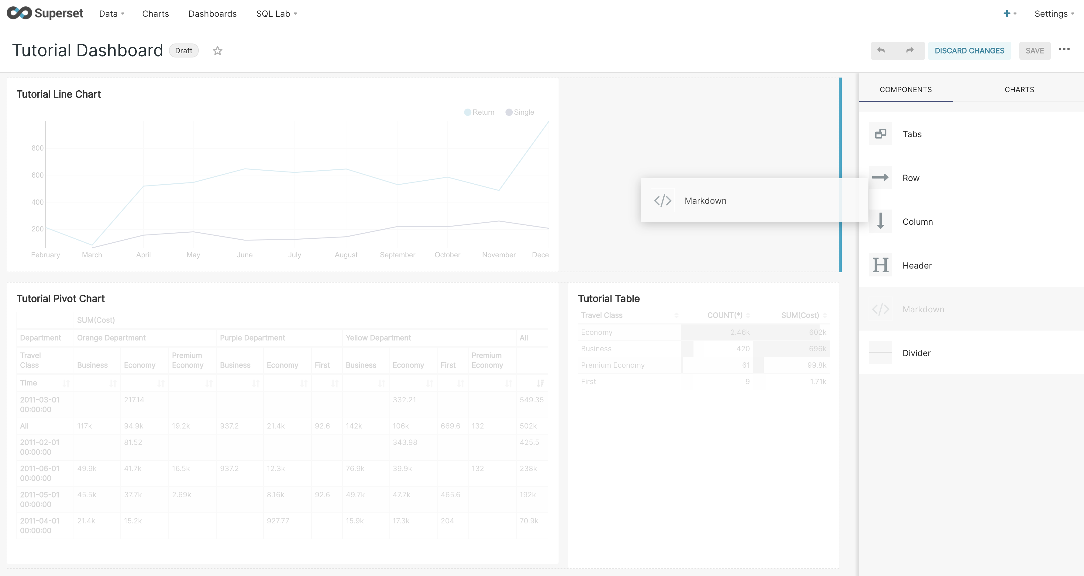 In this tutorial, we will introduce key concepts in Apache Superset through the exploration of a real dataset which contains the flights made by employees of a UK-based organization in 2011. The following information about each flight is given: